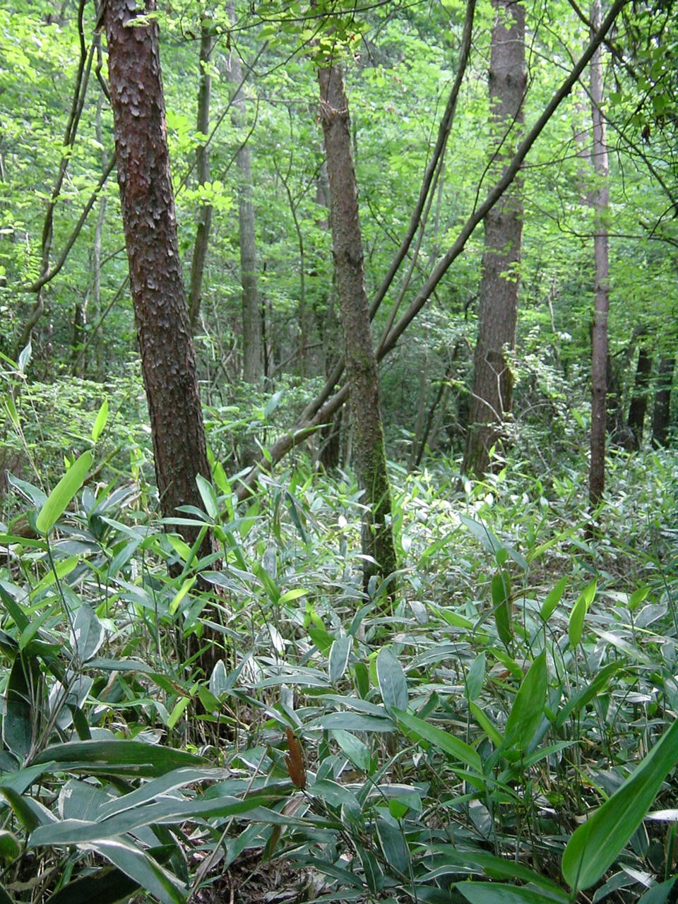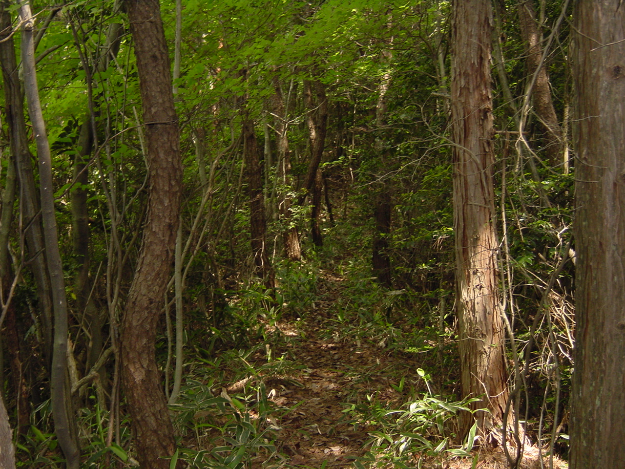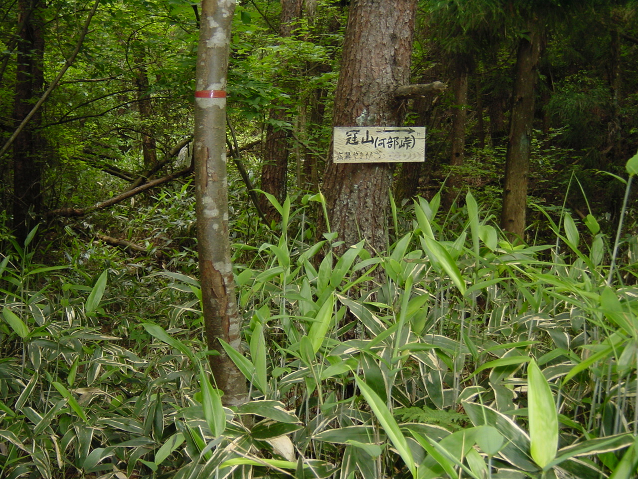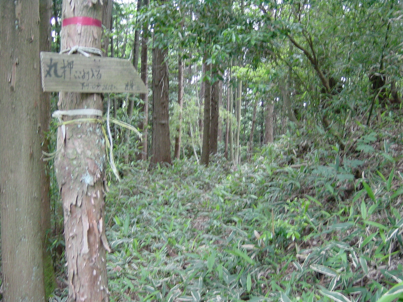ここから、「丸押」方面への下山路。クマザサが茂りわかりにくい。