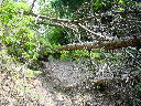 可部峠の手前で倒木があった。しゃがんでくぐり抜ける。