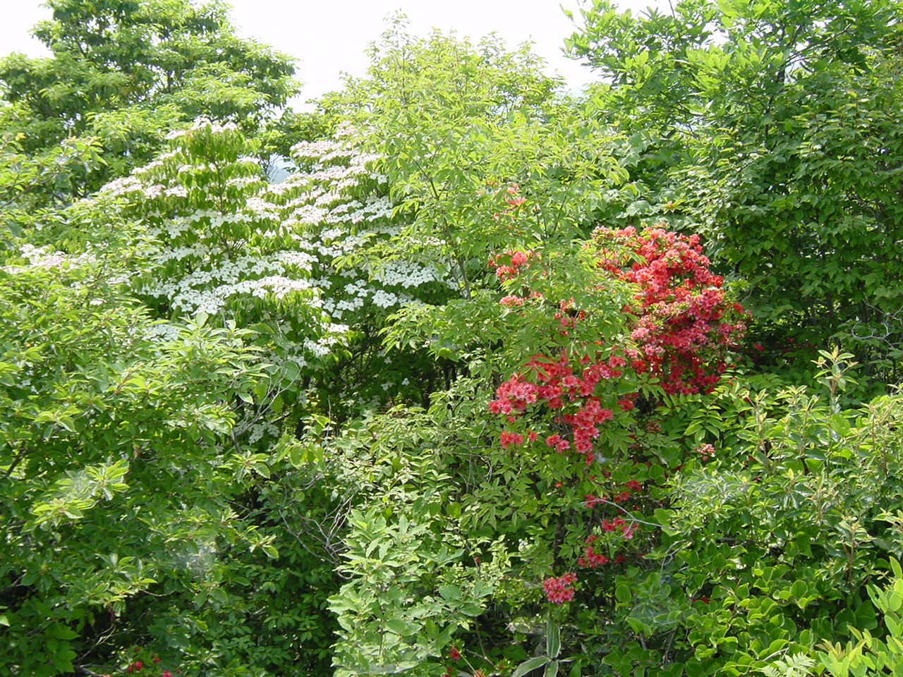 同じくヤマボウシとツツジのコントラスト。これも見事。