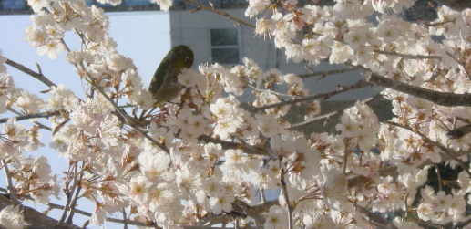 メジロやシジュウカラ・ヒヨドリが蜜を吸いにやってきます。